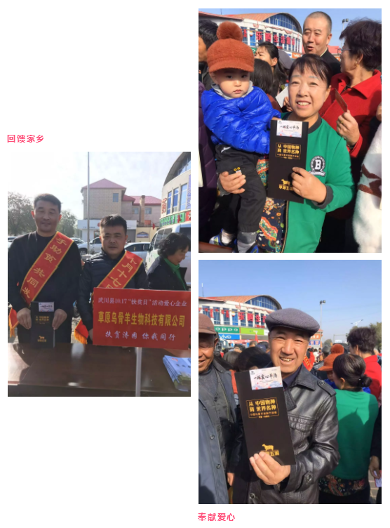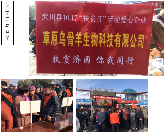 脱贫攻坚是全面建成小康社会的重要标志,企业作为社会建设的成员有着重要的社会责任。一直以来,草原乌骨羊积极响应党和国家号召,不忘履行社会责任,投身于精准扶贫、乡村振兴的国家战略之中,始终把脱贫攻坚贯穿于经营发展战略当中。