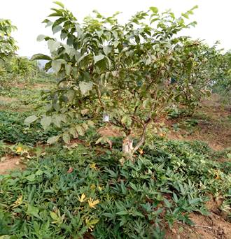 甘薯(Ipomoea balatas L.)作为核桃林下间作的对象,有重要意义:(1)甘薯是本地习惯种植的经济作物,与核桃树的生长期相似;(2)核桃与甘薯间作,不仅能充分利用光、热、水资源,而且具有高产优势,可以弥补核桃树在早期不产果导致的经济损失。由于不同地区的生态类型不同,不同地区间作系统的物种配置和格局也存在较大的差异。考虑到这些基于树木的间作系统的潜在影响,为了最大限度地提高核桃果园的潜在效益,需要通过适当设计和管理间作系统来避免竞争性作用,如土壤水分的可用性、果树光合作用以及生长的可用养分。调整作物种植距离和种植密度,提高农林系统的产量和生产力,已成为世界上重要的农艺实践。另外,间作距离过近或过远,间作密度过密或过疏,可能对农作物和经济林木产生不利影响。因此,确定适宜的间作距离和间作密度是农林复合系统可持续经营的重要内容。