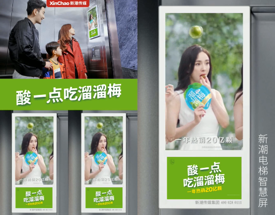 在全国电梯媒体上,时尚、专注努力、拥有国际化形象气质的杨幂,与消费者零距离沟通,有效传递“酸一点吃溜溜梅”品牌诉求,展示“一年热销20亿颗”的佳绩。本次,溜溜梅刷屏全国电梯媒体,以更精准、高效的方式触达目标用户群体,传递一颗小青梅的大价值——从“新”出发,开启中国青梅产业发展新航程。