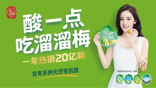 在产品打造上,溜溜梅掌握核心“锁酸”技术,最大限度保留了青梅原果中的天然有机酸等营养成分,为消费者创造更加健康和天然的产品。在品牌塑造上,溜溜梅亦在不断升级迭代。2019年是杨幂成为溜溜梅代言人的第6年,延续“梅子美人”的形象,此番亮相杨幂更是多了代表健康优雅的女神形象。