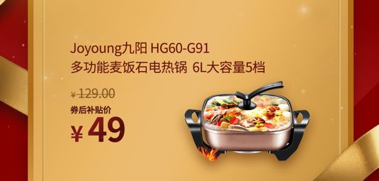想在周末“宅”家里的伙伴们,也可以趁机“秒”一波生活好物,大火男神邓伦推荐的九阳多功能麦饭石电热锅,原价要129元,京东12.12券后补贴价49元就能到手。