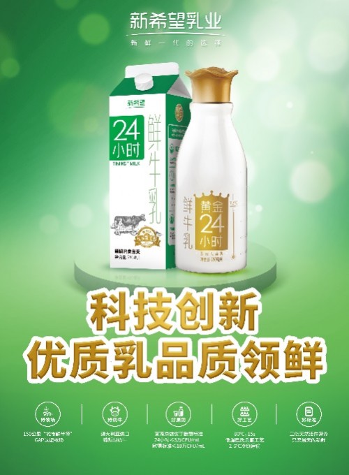 2018年,新希望24小时鲜奶再次升级,推出全新产品“黄金24小时”,以业界领先的72℃/15″杀菌技术,几乎达到了临界值,成为业界标杆,最大程度保留了优质乳中的活性营养物质,该款新品在免疫球蛋白IgG保留率达到50%,乳铁蛋白达到40%以上,更大程度地帮助增强免疫力。