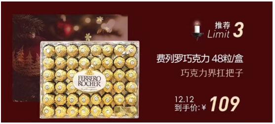 当然,也不要忘了每个女孩子都有一颗“吃货”的心,即使她们总是想着要减肥,但是该吃的时候仍然是绝不含糊。费列罗巧克力一向是巧克力界的“扛把子”,它既不像单纯的巧克力那样的腻人或者是热量爆炸,也不像纯粹的坚果那样只是冲击味蕾,更好的层次感、更完美的美味融合,才是费列罗巧克力的精髓。而且,费列罗巧克力也一直是男朋友送女朋友的绝佳礼物之一,能够尽可能地满足女朋友的那点“吃”的心思。苏宁国际双十二费列罗48粒盒装仅需109元,相较于平时的价格要便宜不少。