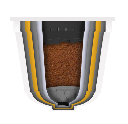消费者手上拿到的单杯(胶囊)乍一看似乎并不需要任何高技术含量的解决方案,但事实上,他具有五层外壳及七层内容物结构,完成食材的常温长期保鲜,及单杯(胶囊)内高温高压及控制水流方式条件的萃取。与国际其余两家的专利技术相比,除能够完成咖啡冲泡外,兼容各固体、液体食品原材的萃取加工。