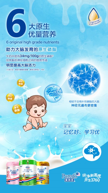 发表于2018年的《磷脂促进婴儿大脑发育研究进展》指出,1岁的宝宝正处于大脑发育关键时期,也叫大脑的机会窗口期,如果在这一时期发育缓慢,后期很难追上和弥补。大脑的快速发育,决定了后期的学习能力。此时神经元会以每秒百万次的速度建立脑连接,视觉、语言、表达等功能性脑连接都在1岁前达到最高。这一时期若能补充到充足的磷脂,宝宝的学习能力更强,学习得更快。美纳多婴幼儿配方奶粉采用富含原生磷脂的新西兰进口奶源,恰恰有助于宝宝补充磷脂,这也就无怪乎广大家长对这款美纳多奶粉情有独钟了。