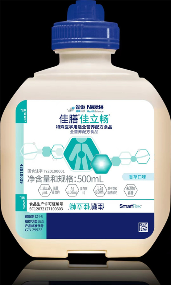 不容忽视的是,肠内营养相关性腹泻,是目前肠内营养使用率较低的原因之一。以重症领域为例,据报道,国内外ICU患者肠内营养治疗期间腹泻发生率高达48.6%-95%,有20-40%的患者因为严重腹泻而被迫中断肠内营养。为破解此临床困境,由雀巢健康科学中国产品创新中心研发的首款液体整蛋白全营养配方——佳膳佳立畅具有预防和改善腹泻、胃肠耐受性良好等优势。知行合一、精益求精往往直通工善之所在,封闭式专利包装、先进的灭菌工艺、独特的瓶盖设计,通用于各种管饲设备和耗材,操作更方便;混合塑料材质创新工艺,握持舒适,轻便耐用;香草口味,即可管饲,又可口服等集众多核心优势于一体的佳膳佳立畅一经面市(已于2019年7月顺利获得特医食品注册并上市)便获频频点赞。