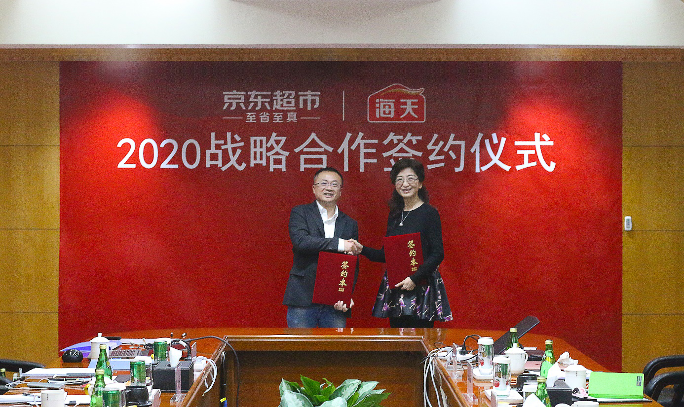 12月16日,京东超市与海天味业签署战略合作意向书,京东零售集团消费品事业部干货食品部总经理刘利振和海天味业品牌总监张欣共同出席签约仪式,双方表示将在新品的创新和推广等方面开展深度合作,并进一步聚焦用户运营共建和营销生态共建,以期未来5年,海天调味品在京东平台累计销售额突破50亿元。