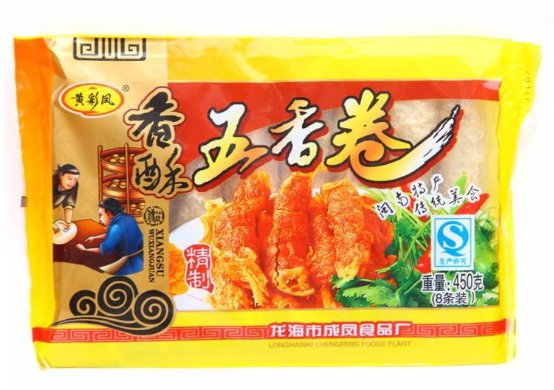 龙海市成凤食品有限公司主营产品包括:石码五香、香酥五香卷、蟹黄八宝、雪花排条、金牌香酥肉、脆皮墨鱼棒、香芋排骨、海苔凤尾虾、九五至尊鲍、皇廷扇贝、千页鲜贝、海鲜鱼卷、水晶笑口虾等。多年来一直以“健康至上,质量保证”为导向,从原材料到生产以及检验都做好严格把关。在2007年获取【黄彩凤】【成凤】等品牌商标注册,并于2010年取得QS食品安全生产许可。龙海市成凤食品多年来不断创新研发,在保证质量基础的同时,生产出色香味俱全的绿色安全食品 。