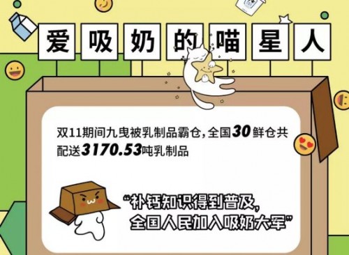 根据《2019中国奶业质量报告》显示,2018年中国奶类产量3176.8万吨,同比增长0.9%,奶类产量已经占到全球总产量的3.8%。可以看到,经过数十年的发展,奶业规模化发展成果显著,中国奶业已经跨越高速发展时代,人们已经从‘有奶喝’转向‘喝好奶’,低温鲜奶逐渐成为消费趋势。九曳供应链发布生鲜囤货报告显示,在双十一期间,乳制品一跃成为仅次于肉类的最受欢迎的品类,九曳供应链共送出3170.53吨乳制品,成为“最重”生鲜品类。