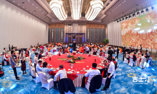 吉士汀经销商大会结束后,一支活泼热闹的“奶酪甜心”开场舞拉开了晚宴的帷幕。晚宴上,陈树林董事长带领吉士汀团队与合作伙伴们共同举杯庆祝。