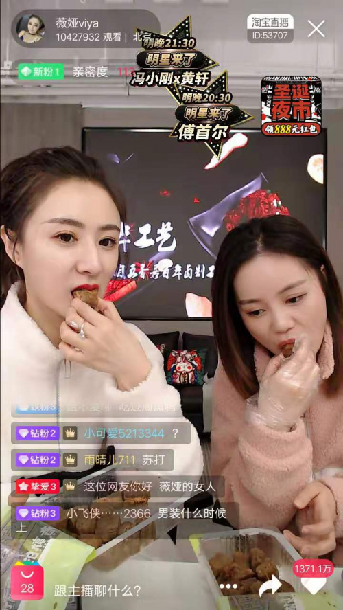 12月22日晚上23点50分左右,薇娅淘宝直播间的“你好鸭大礼包”创造了10000份1秒钟就被抢光的记录,为了满足直播间“吃货”们的需求,又临时增加了10000份。不到5分钟的直播,创造了超过100万元的销售额。