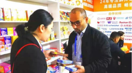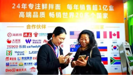 在南街村集团展位,近百位新老客户进行现有业务的沟通和新业务板块的洽谈,包括来伊份、胖东来、便利蜂、盒马鲜生、中粮我买网等众多渠道商和平台商。一位来自上海的采购代表说,自己10年前就开始吃南街村鲜拌面,现在全家人都喜欢吃,此次在展会上看到南街村鲜拌面非常兴奋,说起吃面的滋味更是神采奕奕。一名来自香港的巴基斯坦籍客商则对麦恩巧克力棒表现出浓厚的兴趣,他们以巴基斯坦及东南亚地区为主要市场,正在寻求巧克力棒类产品,他向工作人员详询合作相关事宜。