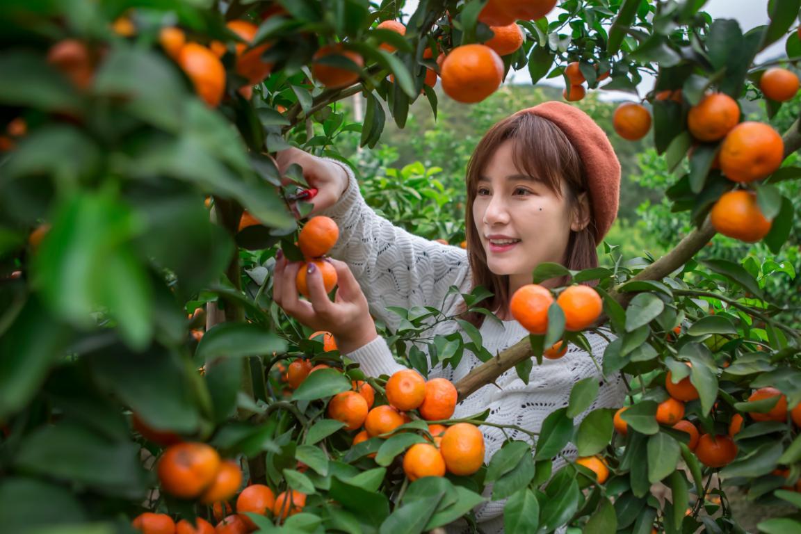 抖音短网红拍摄采摘沙糖桔