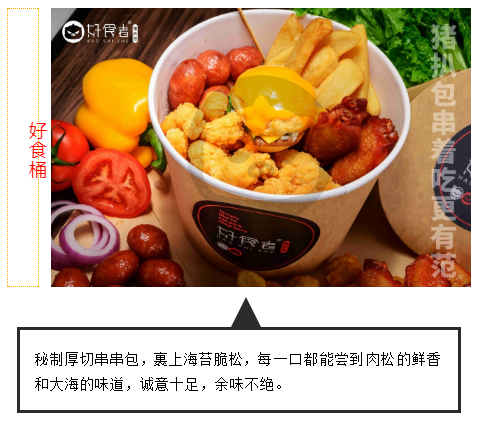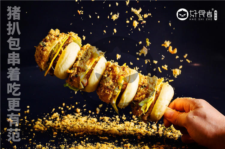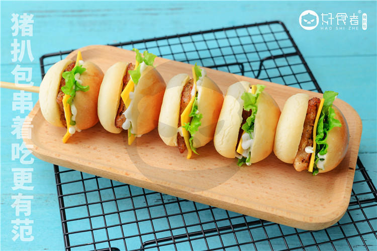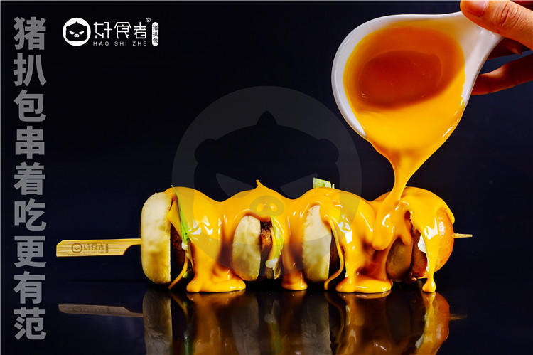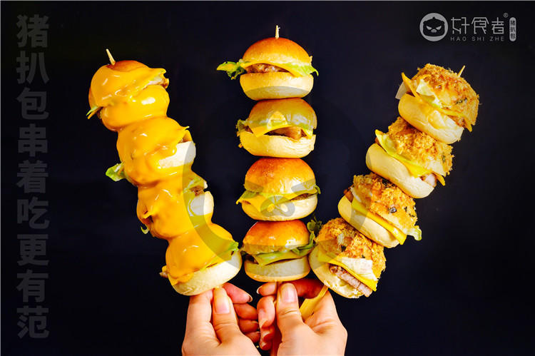 猪扒包可以说是肉食主义者的最爱,一口下去的满足感,口腔内肉香、包软、汁鲜交汇在一起形成的幸福感根本无法形容。好食者串串猪扒包的出现,拨动了当代年轻人追求个性、独特、时尚的心弦。它不仅带给你满满的幸福感,还带给你一种新颖、独特、有范的用餐体验感。