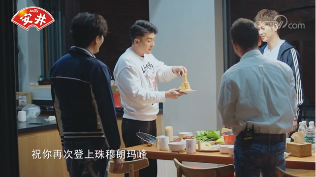 节目中嘉宾用安井的锅鲜装系列的鱼豆腐叠起一座珠峰祝福北大登山队长再登高峰。