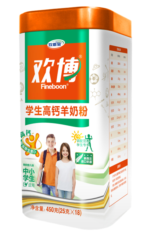 针对适龄的学生群体,欢恩宝乳业特别研发了欢博学生高钙羊奶粉。独特的高钙+多种维生素配方,为学业繁忙的学生们提供了全方位的营养支持,满足学生快速的身体发育和大脑发育。