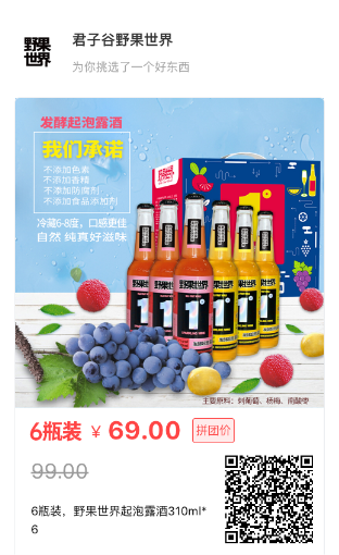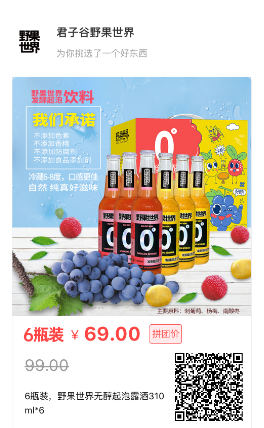 野果世界无醇起泡露酒(0度)6瓶(310mlX6),春节尝鲜拼团价才69元(原价99元)