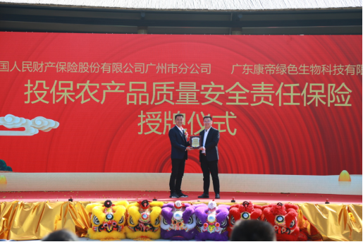 食品安全,关乎国计民生、社会和谐,为此广东康帝公司从今年12月份开始,为其下的所有山茶油产品投保了农产品质量安全责任保险。中国人民财产保险股份有限公司广州市分公司向广东康帝授牌,共同筑牢产品质量安全关。