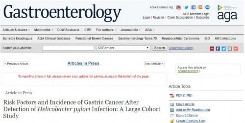 Risk Factors and Incidence of Gastric Cancer After Detection of Helicobacter pylori Infection: A Large Cohort Study,10.1053/j.gastro.2019.10.019 ,10-22, Article