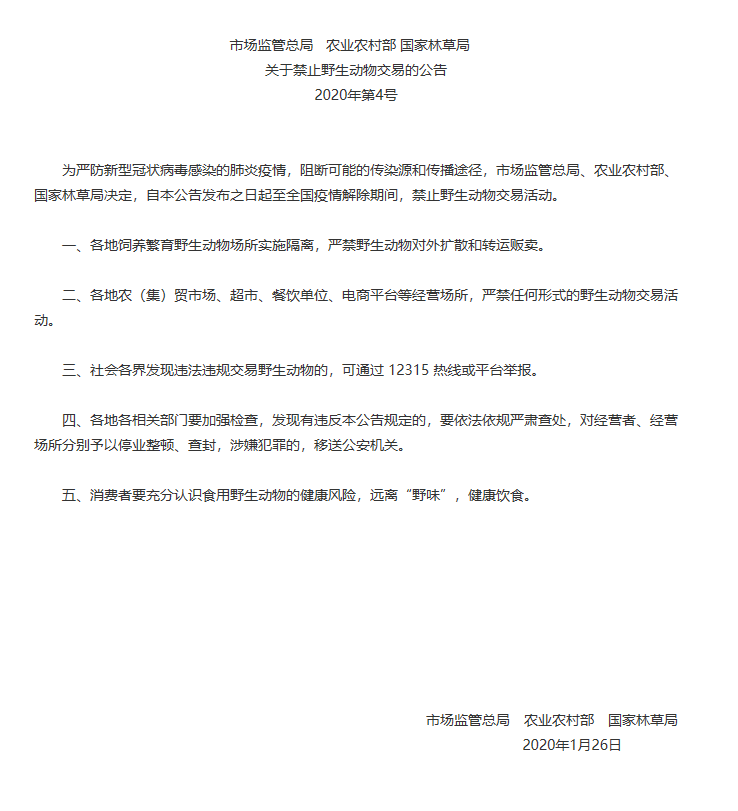 针对蝙蝠、果子狸、黄麂、野兔、野猪等野生动物,在平台内开展了新一轮巡检排查,目前暂未发现有平台商家存在销售野生动物的情况。