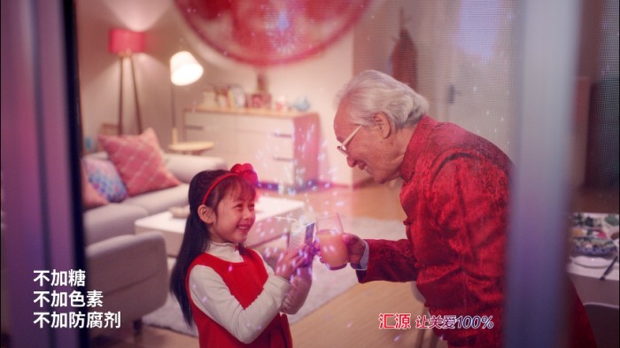 新版TVC延续了汇源一直以来的“走心”风格,通过贯通春节期间各个消费场景,将汇源果汁产品融入到消费者活动日常当中,持续深化“有汇源才叫过年”的品牌理念。整支TVC以红色作为画面主基调,营造出热闹、温馨的视觉空间,同时人物场景和产品画面的交替变换,加之饮用百分百果汁后露出笑容等幸福场景塑造,将观众迅速带入到了春节阖家团圆的节庆气氛中,激发出消费者的情感共鸣,进一步强化汇源果汁产品品牌记忆以及消费者对汇源品牌理念的认同感。