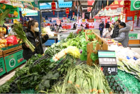 2020年2月1日,市民在江苏省连云港市赣榆区一家超市选购蔬菜。