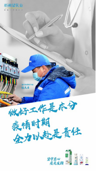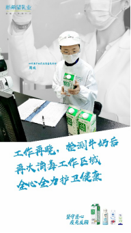 生产线员工在自我防护的基础上,严格遵守生产标准,保证乳品质量。接下来的工作就交给质量技术部,通过其严密监测产品才能出厂。面对疫情冲击,质量技术部坚持标准,为防止人员缺失造成任何一项的检验遗漏,工作不到一年的周欢熬夜加班,对当天的乳品进行检测,忙完已经凌晨2点。然后他背起喷雾器,对工作区域又进行了一道消毒;主管陈尚来冲在一线,连续5天顶岗;王锦主动承担起了全部门的消毒任务,肖艳玲熬夜整理出厚厚一沓疫情防控建议和复工注意事项……