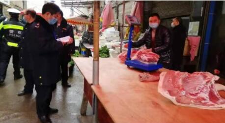 2月3日,绥阳县市场监管局在开展疫情防控专项检查时,发现两家猪肉经营户涉嫌销售未经检疫检验猪肉,执法人员立即按照相关程序进行扣押。