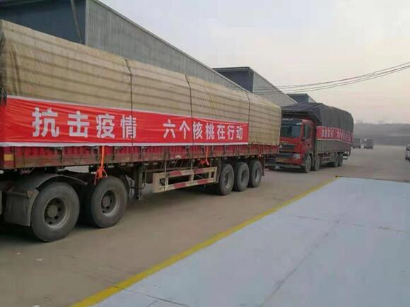 继物资顺利抵达黄冈后,由六个核桃经销商组建的运送队紧急调配车辆,使满载六个核桃的物流车辆顺利抵达麻城、蕲春、黄梅、孝感,驰援之旅,分秒必争!