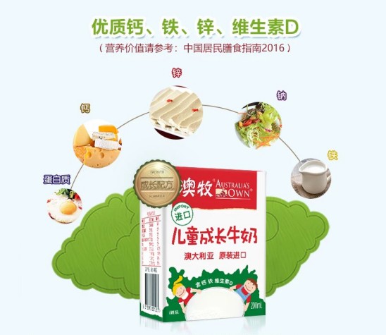细心的家长会发现,澳牧进口儿童牛奶成分中包含了钙、铁、锌、维生素D和蛋白质,超出普通的纯牛奶的营养含量,其原生蛋白质含量高达3.4g/100ml;钙含量也达到了110mg/100ml,高于纯牛奶的国家标准。