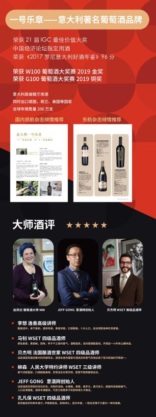 唯意·一号乐章属于意大利DOC级别的优质酒,整体采用重瓶瓶身设计,精选本土葡萄品种普里米蒂沃(Primitivo),纯手工采摘,并经过法国小橡木桶陈酿六个月而成。开瓶初闻红色樱桃/李子等果香,伴随丁香和黑胡椒等香气,酒液呈宝石红色,略带紫色酒裙,入口香气明显,酒体结实强劲,甜美的浆果耐咀嚼的单宁,收尾有力,整体酒体平衡,回味甜美令人愉悦。