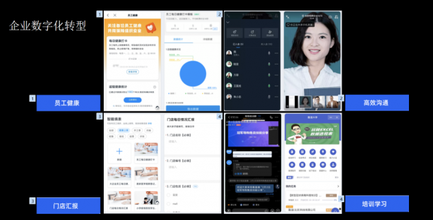 另外针对疫情下的特殊境况,我们推荐企业要进行数字化转型,利用线上应用,比如钉钉、企业微信等,与员工进行更高效的沟通。与此同时也可以利用应用工具,进行线上门店汇报,或者组织员工进行培训学习。