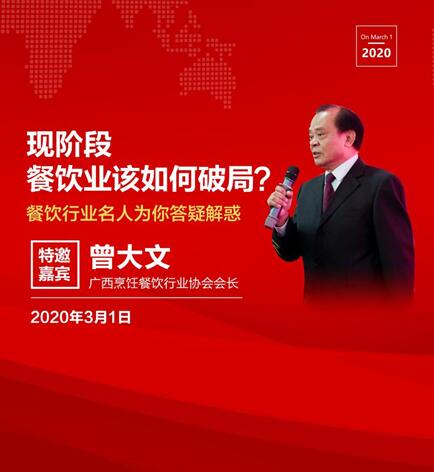 2020年初,突如其来的武汉新冠病毒肺炎疫情,使广西餐饮业遭受到前所未有的打击。疫情之下,餐饮企业该如何闯关?3月1日,广西烹饪餐饮行业协会会长曾大文先生做客广西华南烹饪技工学校直播间,针对当前情况,深度分析了新冠疫情对广西餐饮业的影响,及疫情过后餐饮行业发展的展望。