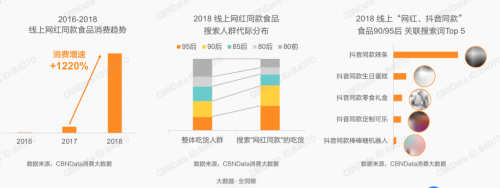 被称为Z世代的95后人群,受“网红、抖音同款”的影响尤为明显,在《2018年CBNData消费大数据》中显示:2018年,在Z世代线上搜索最多的网红食品关键词TOP5中,“生日蛋糕”排在了第二位。并且,颜值经济突破品类界限渗入食品品类,线上“高颜值零食”的消费在三年内呈现爆发式增长,消费增速超过400%。