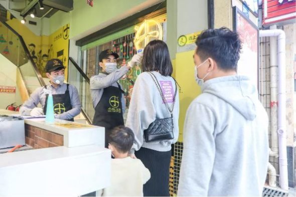 小田豆浆为每一位到店顾客提供免费一次性手套、口罩,并进行测量体温、手部消毒;为顾客提供分餐勺、公筷和煮烫餐具;确保每张桌子间距至少1米以上;对近日接触、往来过疫区(武汉)的顾客,进行专项登记和专门服务,并告知总部品控部门。