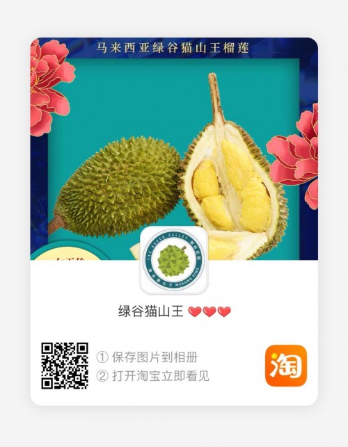 如果你心爱的她处事温文尔雅,讲究细节和品位,那就一定是绿谷猫山王榴莲的潜在粉丝,吃一次就能刷新对榴莲的认知!果肉绵密细腻,入口微苦而后甘甜,回甘明显,香气充斥着整个口腔,口感层层递进丰富到爆炸。猫山王跟其他榴莲不同,味道闻着是淡淡的青草香。入口略微带有苦味。滑滑的,因为是自然熟透的,可以直接吸入嘴里。让人真的是回味无穷啊。唇齿间留有香味。吃过之后绝对能征服女神的胃。输入喵口令¥sFsl1TcdG8Y¥提前定制惊喜。