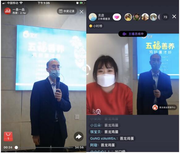为了让贝店用户更了解晋龙鸡蛋,贝店一县一品首推“云”溯源模式,通过主播“连麦”的方式,直击晋龙鸡蛋生产基地。