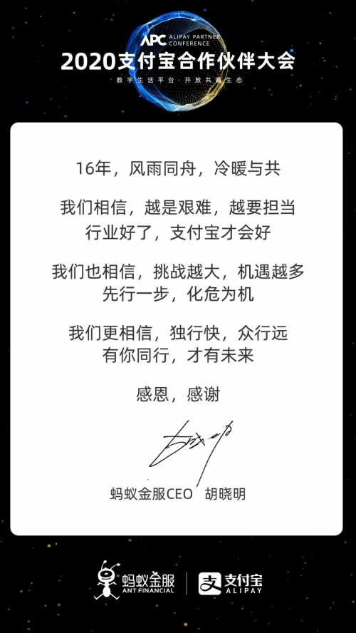 “支付宝相信,只有携手服务商服务好商家,才能最终服务好消费者”,胡晓明在会后,他还特意给银盒子寄来了感谢信,感谢银盒子一直以来在线下商业数字化领域的不懈努力和付出。