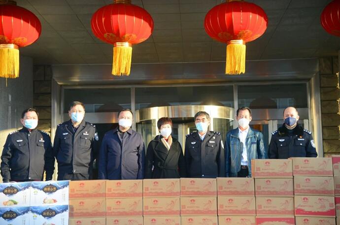 辽宁菊花女食品有限公司董事长王艳红说:现在疫情严重,紧要时期,我们的公安干警舍小家顾大家,坚持奋战在防疫一线,把老百姓护在身后,这些物资真的没有啥,就想跟他们说一声您辛苦了!元宵节快乐!希望疫情尽早过去,让他们也能好好休息,跟家人团聚!