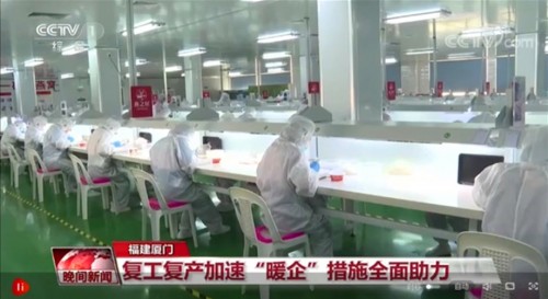 图:3月12日,央视CCTV-1《晚间新闻》报道燕之屋复工复产行动