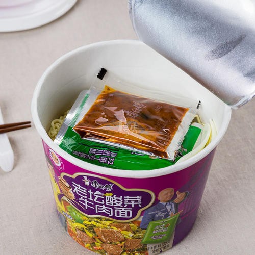 为什么说起康师傅的泡面就是因为康师傅有三包配料,比起韩国的泡面两包就要丰富多了,尤其是老坛酸菜这一款。这一款的酸菜比较丰富,是实打实的有酸菜在里面的泡面,调料包比较大。味道吃起来也比较好,比较爽滑。汤汁喝起来也比较鲜嫩,很多小伙伴都喜欢吃这一款!
