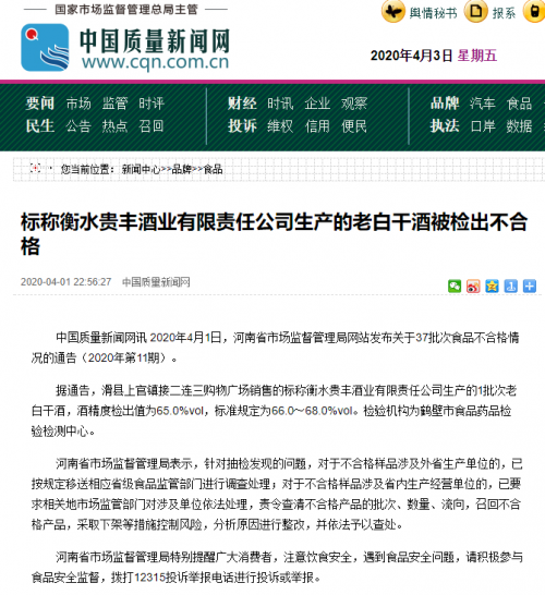 近日,中国质量新闻网的一篇文章《标称衡水贵丰酒业有限责任公司生产的老白干酒被检出不合格》引起广大酒友的讨论,很多网友疑惑地问,这个老白干酒是我熟知的衡水老白干吗?