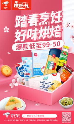 4月17日至4月30日,打开京东APP,搜索“烘焙节”或“迎春好味”,烘焙好物一站购,超多精彩,超多惊喜,你也能做烘焙小能手!