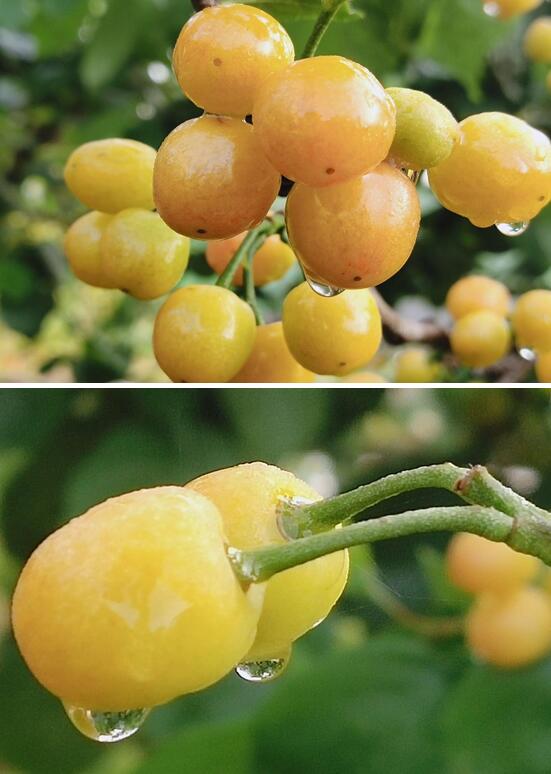 4月19日,湖北省老河口市酂阳办事处王甫洲太山村,四组村民王帮荣种植的一块早熟樱桃品种熟了。果园内绿叶簇拥、网罩覆盖下,成熟了的樱桃黄灿灿地;熟透了的变成微红色;即将成熟的果子呈黄青色。经历一场刚刚雨水淋洗的樱桃,干净的果子上坠满了晶莹剔透的水珠。果实累累压弯了树枝,像灯笼一样挂满了一树,一幅丰收喜人景象十分迷人。主人王帮荣好客的邀请乡邻杨玉和杨玉莲姐妹俩,到果园中摘樱桃,体验果农采摘过程,享受品尝果实甘甜。直乐的姐妹俩边摘边尝,不时还玩起自拍。从该组嫁到城里生活的大姐杨玉,今天恰逢到妹妹家做客,赶上尝鲜樱桃口福,忍不住地夸赞:“如今农民们的田园风光日子过得真是有滋有味,叫人好不羡慕”。品尝到丰收的劳动果实,三个女人顿时在果园乐开了花。瞧,她们脸上笑的多灿烂!
