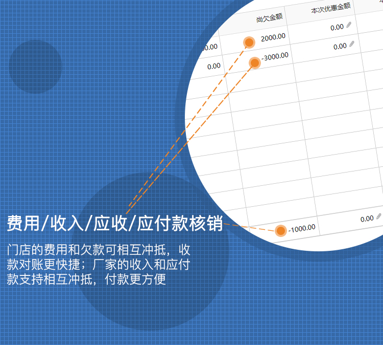 一般情况下,经销商与商超及厂家之间都会有多种类型的账务往来,通过舟谱云管家新增的费用/收入/应收款/应付款核销功能,不仅经销商与商超客户之间可以实现费用与应收款直接冲抵,同样的,经销商对厂家的收入和应付款在云管家中也支持相互冲抵,经销商付款收款都变得更加便捷了!