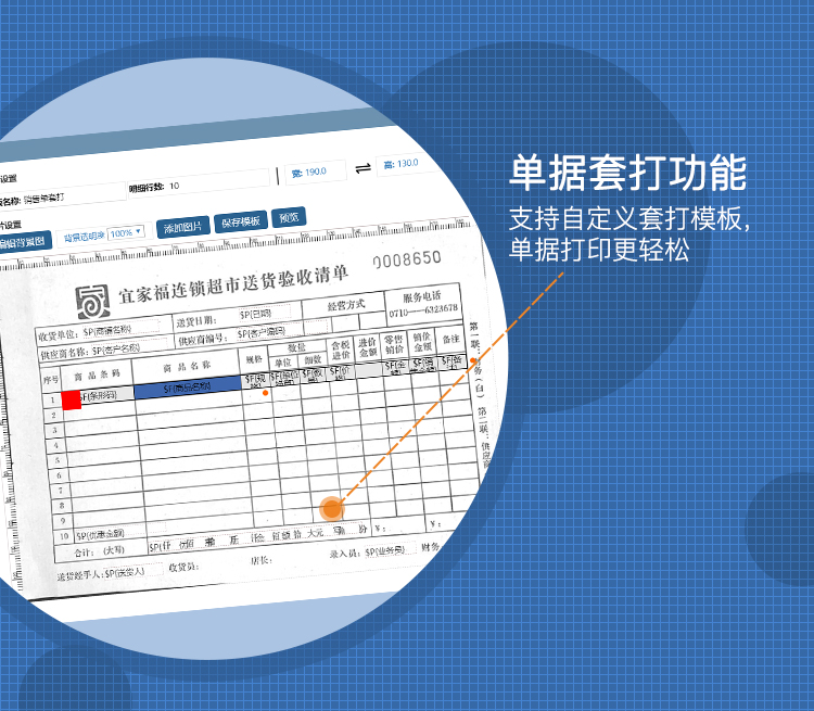 此次舟谱云管家功能更新,除了新增了以上各类款项收付的相关功能以外,还新增了单据套打功能。由于部分商超为了方便统一管理和保存单据,会要求经销商按照其提供的特定模板打印单据,否则送货无法签收。更新后的舟谱云管家支持绝大部分商超的特定打印模板,经销商不仅可以为每一个打印模板设置纸张格式,甚至去掉线条只打印数据,也不会出现数据出格的情况。