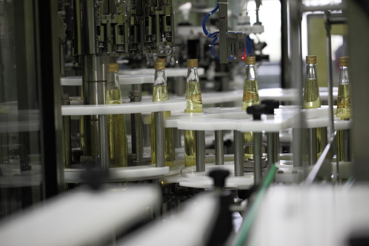 500ml容器日处理量可达8000瓶的意大利威特派克灌装机,全封闭式自动封装,液体接触部分使用不锈钢,有效保证茶油质量稳定;