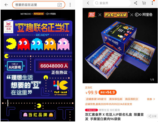 首先,经典IP联名玩跨界。联手阿里,在天猫“豆趣联名正当红”主会场,双汇素食界携手吃豆人,联名首发“宇宙魔方”限量版礼盒,用年轻人心中的“IP潮流图腾”,引发粉丝的情感共鸣,助力品牌有效扩圈、吸粉满满。
