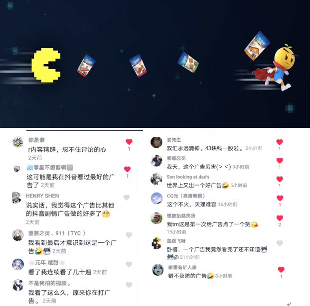 另一方面,脑洞游戏视频玩过界。联合素有国民潮流种草机之称的抖音平台,别出心裁的发布了一条脑洞特别大的软性广告视频,游戏场景中,吃豆人追逐豆豆时“破圈”出界,变身为“豆星人”,巧妙的植入了双汇素食界品牌IP,并在观者猝不及防时,抛出了蛋白素肉产品,加之原版游戏BGM音乐,着实打造了一波令人“意外”的记忆杀,以这种出其不意的方式在粉丝内心种草,收割了可观的私域流量。众多网友面对这波操作,纷纷惊呼天啦噜太神奇了。