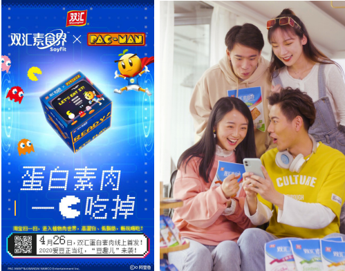 不过,“植物肉”到底是什么、味道怎样、营养如何?对于公众来说可能还是一个抽象的概念。而就在近日,笔者捕捉到一条很有想象空间的信息,中国农业产业化龙头企业——双汇,开展了一场新颖独特的线上首发,为我们带来的正是倍受业界关注的“植物肉”——双汇素食界蛋白素肉。4月26日,双汇联手阿里,在天猫“豆趣联名正当红”全球经典IP吃豆人40周年主会场开设“双汇蛋白素肉”专区,启动了吃豆人联名礼盒限量首发,双汇蛋白素肉战略新品类正式登场;与此同时,双汇豆星人&吃豆人的联名短视频,在拥有4亿日活用户的抖音平台同步首发,视频一出街就被刷屏,着实吊足了粉丝的胃口!
